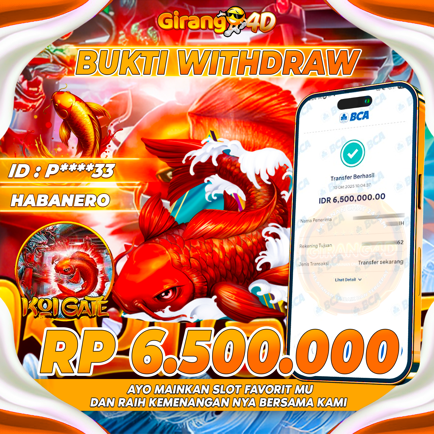 Selamat Kepada Id : P****33 Atas Withdraw Rp. 6.500.000 Juta Hari ini. Ditunggu Withdraw Selanjutnya dan ajak juga teman temannya bergabung di GIRANG4D
